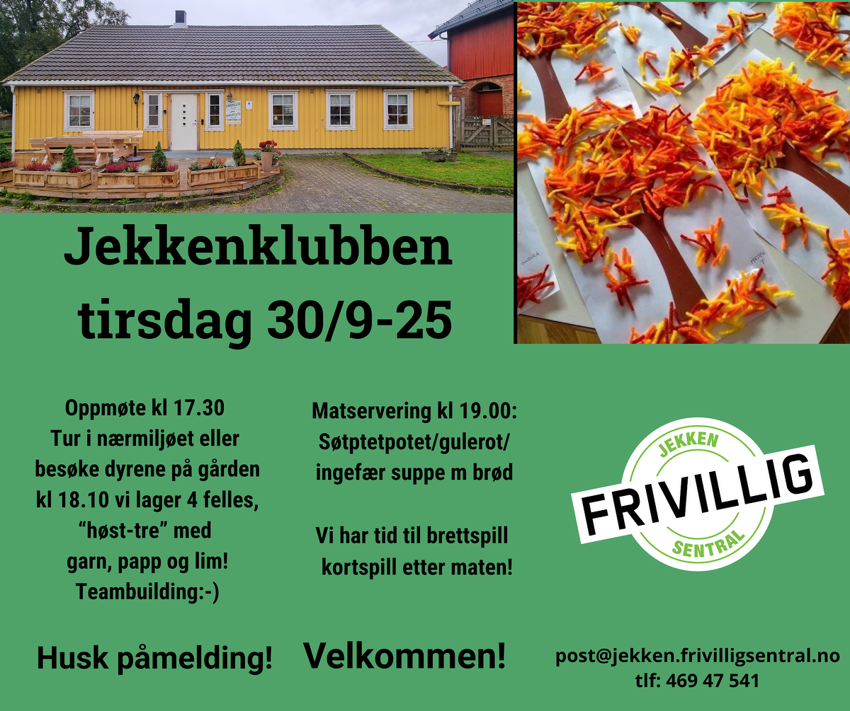 Inngang kr 50 inkl. servering for medlemmer og kr 60 for ikke medlemmer. Jekken vil ha ulike aktiviteter fra uke til uke. Kom gjerne med tilbakemeldinger på hva akkurat du kunne hatt lyst til at vi skal ha som aktivitet.