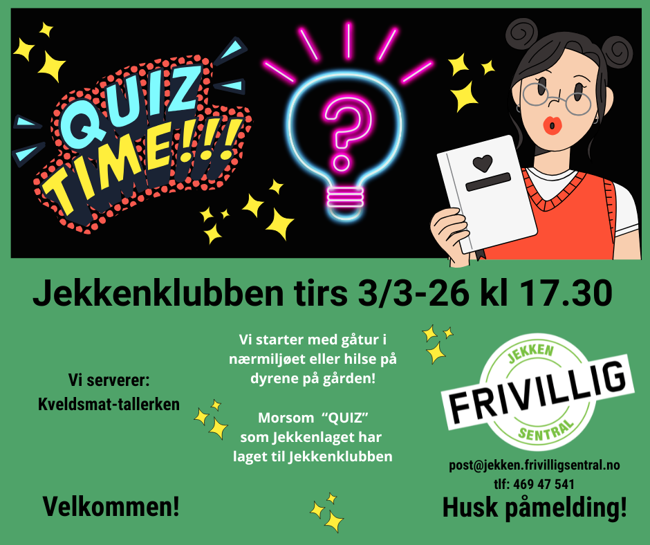 Inngang kr 50 inkl. servering for medlemmer og kr 60 for ikke medlemmer. Jekken vil ha ulike aktiviteter fra uke til uke. Kom gjerne med tilbakemeldinger på hva akkurat du kunne hatt lyst til at vi skal ha som aktivitet.